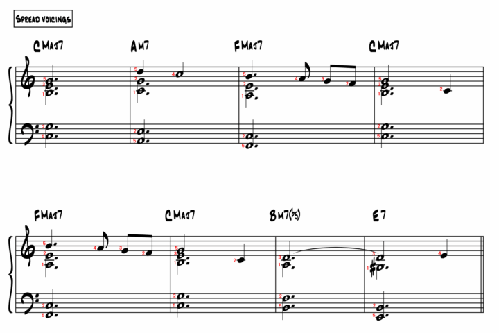 Think Numerically: In jazz, we visualise scales numerically which helps to analyse chords, chord progressions, and jazz standards. For each major scale, think 1-2-3-4-5-6-7 instead of the note names.